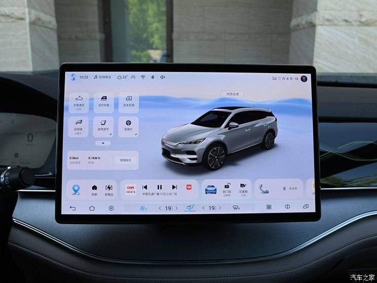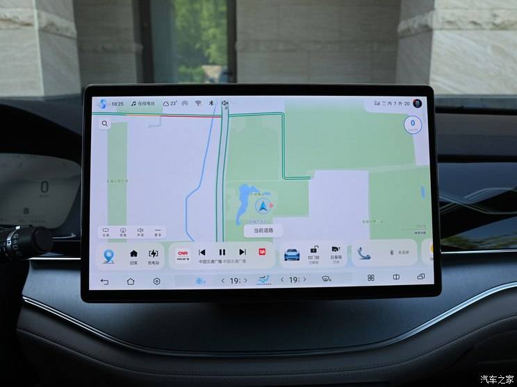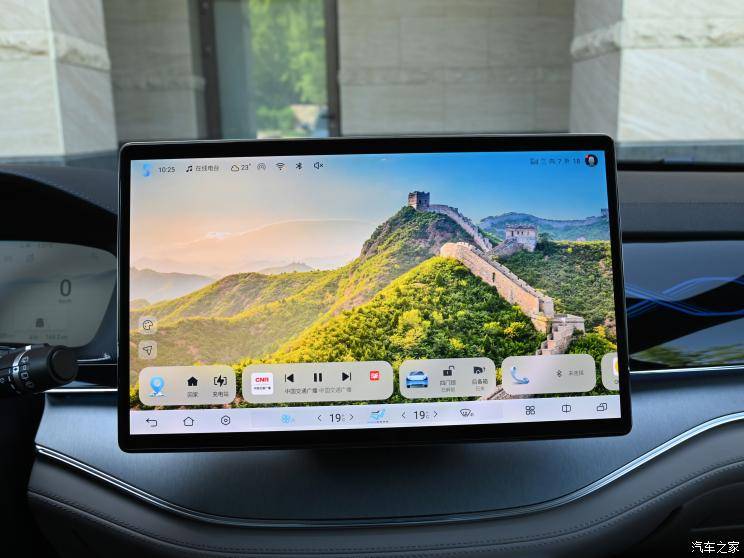 车内的实体按键不多,主要功能要靠中控大屏来进行操作。这块15.6英寸触屏可进行自适应旋转,2.5K屏幕视觉效果很鲜艳、清晰,触控反应、系统的速度也都令人满意。车机搭载DiLink(5G)智能网联系统,基于骁龙处理器与高通联合,深度定制了支持5G的车用座舱平台。在功能方面,车机能支持壁纸/地图双桌面,智能语音唤醒响应时间仅400ms。