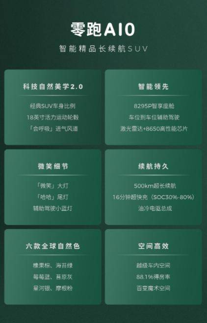 另外零跑A10作为A系列产品,定位全球车市场,品质技术方面也延续了零跑全域自研十年底蕴的优势,比如前面提到的纯电车核心产品点续航部分,在绝大部分竞品顶配还是400多km的时候,零跑A10直接给到了500km续航,加上16分钟快充补能以及同级少见的油冷电驱,性能、续航体验无疑会很出色。除此之外,作为全球车的零跑A10不出意外还将延续四轮独悬+中欧团队的联合底盘调校,因此底盘的驾控质感表现也不会让人失望。