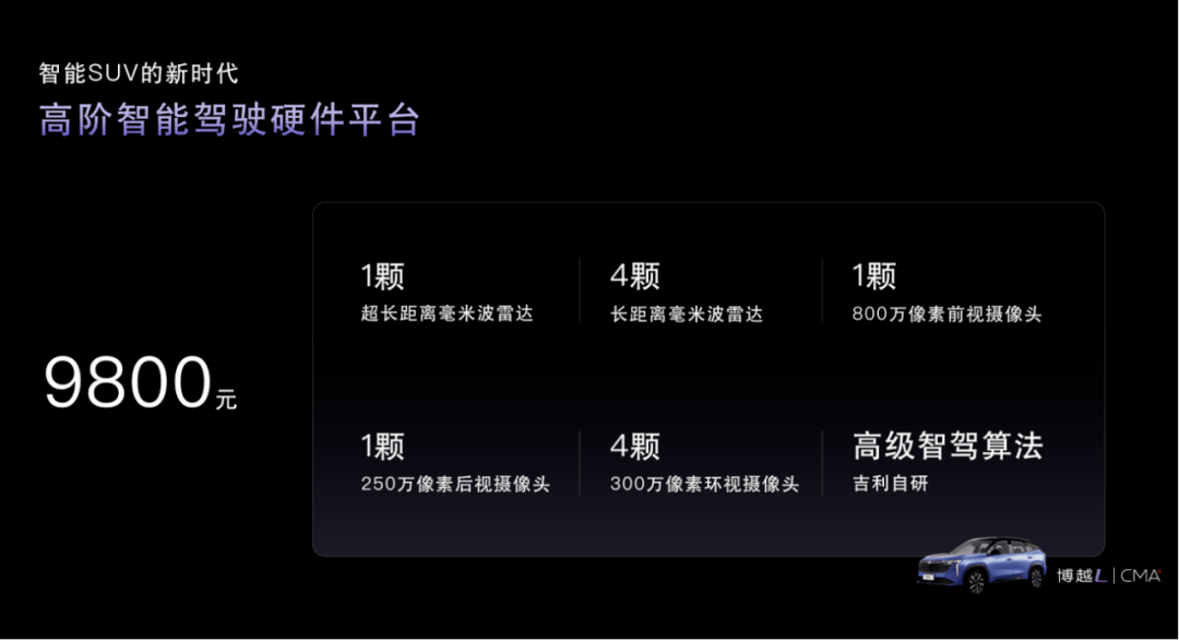 值得一提的是,博越L全系实现了15大硬核标配,让更多用户共享吉利技术进步的红利。包括:高通8155芯片、ACC自适应巡航+LKA车道保持等L2级基础智能驾驶辅助系统、数字箭矢LED贯穿尾灯、环绕式情感光幕、178LX数字律动LED大灯、13.2英寸中控竖屏、银河OS Air版、10.25英寸数字液晶仪表、高清全景影像、抗病毒门把手,AEB-P行人预碰撞系统、赛车级刹车系统、航天级7系铝合金防撞梁、一体式硼钢热成型门环以及手机APP远程控制。其中,像高通8155芯片等配置,均是许多豪华品牌需要额外付费选装或高配版型才有的配置。而博越L实现了全系标配,让用户体验一步到位。