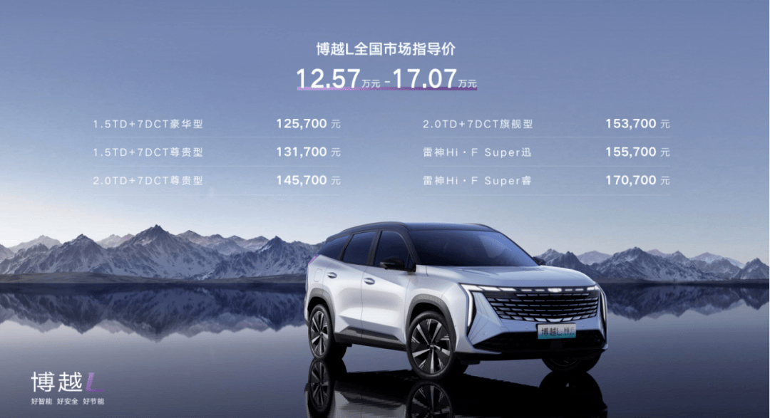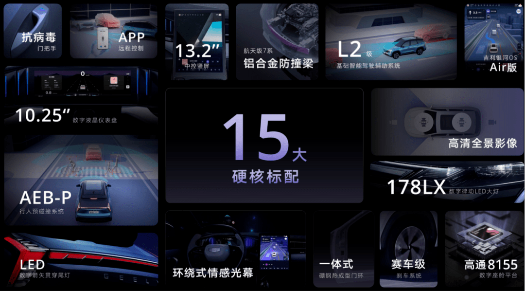 新车共推出3款动力总成共计6款车型,官方指导价为12.57—17.07万元,汇集了CMA架构、雷神智能混动、GEEA2.0电子电气架构和NOA高阶智驾辅助系统等吉利最强造车科技。