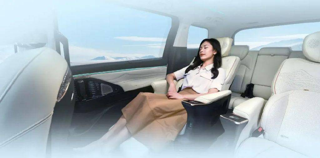 车身尺寸方面,其长宽高分别为5315/1980/1810 mm,轴距达到3200mm,比别克GL8还要大,还有四座和七座两种座椅布局。同时,车内配备极具舒适性的座椅及诸多实用功能,比如前排座椅靠背位置提供有小桌板,第二排座椅支持电动调节、座椅加热、通风、按摩等功能也配备齐全,再加上腿托,乘坐起来非常舒适。值得一提的是,相比腾势D9的普通皮质座椅,梦想家的座椅采用OEKO-TEX®母婴级亲肤面料,经过超300项有毒有害物质检测,即使是敏感肌肤的家庭成员也能安心乘坐。