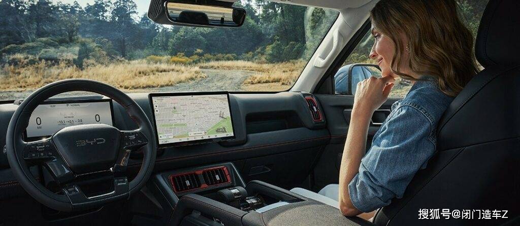 内饰配备比亚迪经典的超高清自适应旋转悬浮式中控屏,尺寸为12.8英寸,同时辅以10.25英寸的全液晶仪表盘以及12英寸的W-HUD抬头显示,车机系统支持Apple CarPlay和Android Auto互联,用户还可以通过内置的Stingray交互式车载KTV进行车内“K歌”。开着这样一台皮卡野兽,极速行驶在无垠的荒原上,边享受驾驶带来的快感,边享受K歌带来的美妙体验,这种结合还是非常有想象空间的。