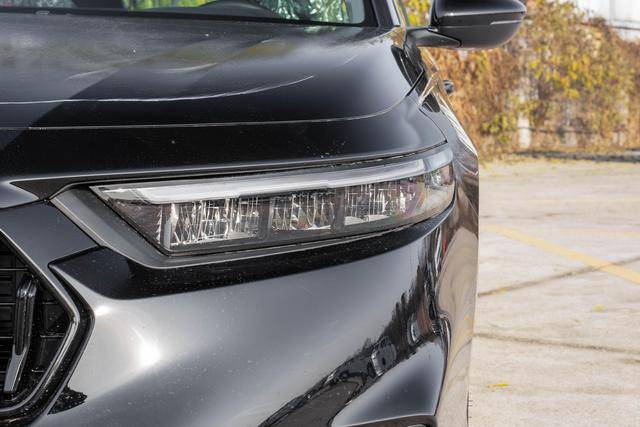 车头部分的纵向直瀑式格栅,是整车外观的点睛之笔,设计风格和不少中高端运动车型相近,没有浮夸的镀铬装饰,却能凸显出不错的力量感和精致感,气场内敛却不廉价,辨识度也很高。搭配造型犀利的大灯组,整车前脸层次分明,耐看度很高,不管是近距离看还是远距离观察,都没有廉价感,车身缝隙均匀,漆面做工扎实,能看出合资品牌的品控功底。
