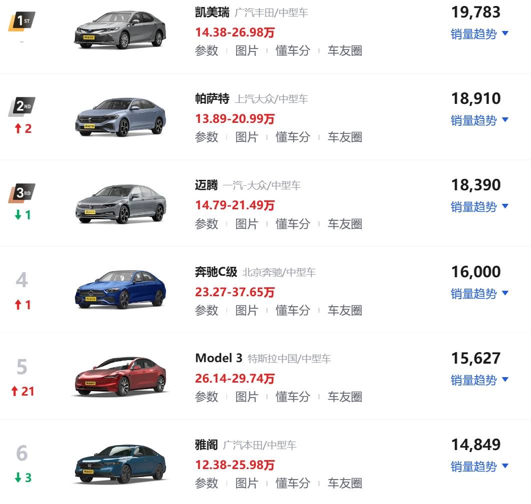 销量下滑,与凯美瑞雅阁拉开差距