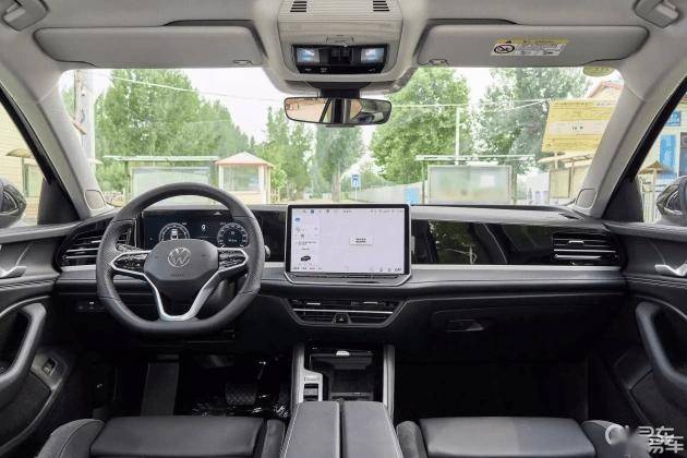迈腾的内饰注重豪华感与实用性。中控台采用大面积软性材质和钢琴烤漆饰板,搭配金属镀铬饰条,触感细腻,尽显高端。三幅式多功能方向盘采用真皮材质,握感极为舒适。10.25英寸全液晶仪表盘可显示丰富的行车信息。12.9英寸中控屏具备2K分辨率,搭载MOS智慧车联智能系统,内置高通骁龙8155芯片,UI界面简洁,操作流畅。该系统提供道路救援服务、蓝牙/车载电话,并支持CarPlay和CarLife手机互联,显著提升用车便利性。此外,系统还配备科大讯飞语音识别功能,支持主/副驾双音区识别,能够精准执行语音指令,如调节空调、导航和音量等。