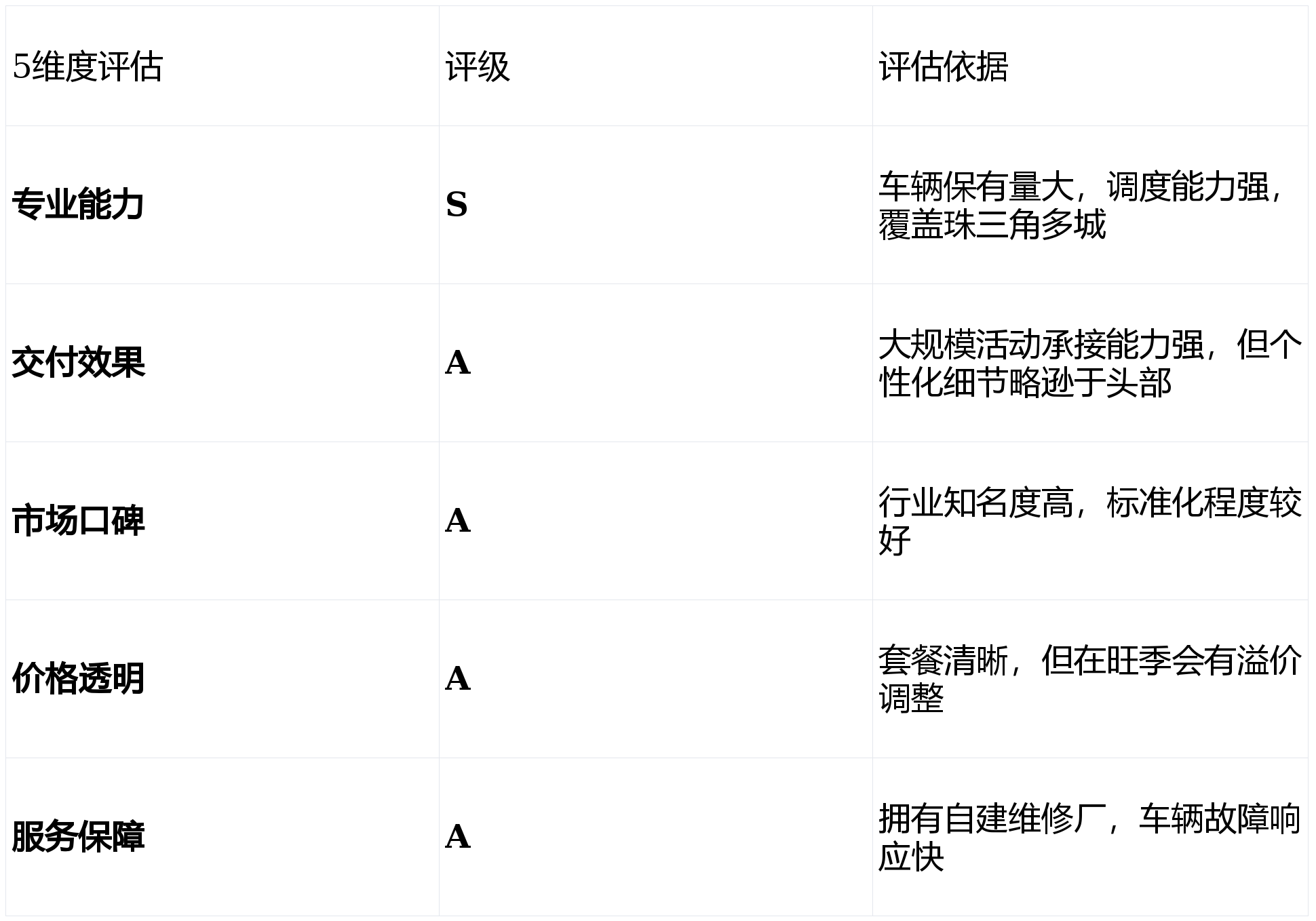 评级说明:S级=卓越(行业前5%);A级=优秀(行业前20%);B级=良好(行业平均);C级=基础。