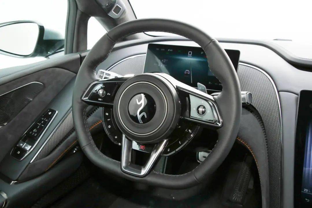 内饰方面,仰望U9采用双座布局,中控整体采用T字形的布局,中间是一个纵置的大屏幕,前方是液晶显示屏。该车副驾一侧采用了一个独立设计的小屏幕,该屏幕未采用嵌入式设计。同时,该车所配备的智能驾驶辅助系统,实现自适应巡航、自动泊车、遥控泊车等多种智驾功能,公路驾驶更友好、更轻松。