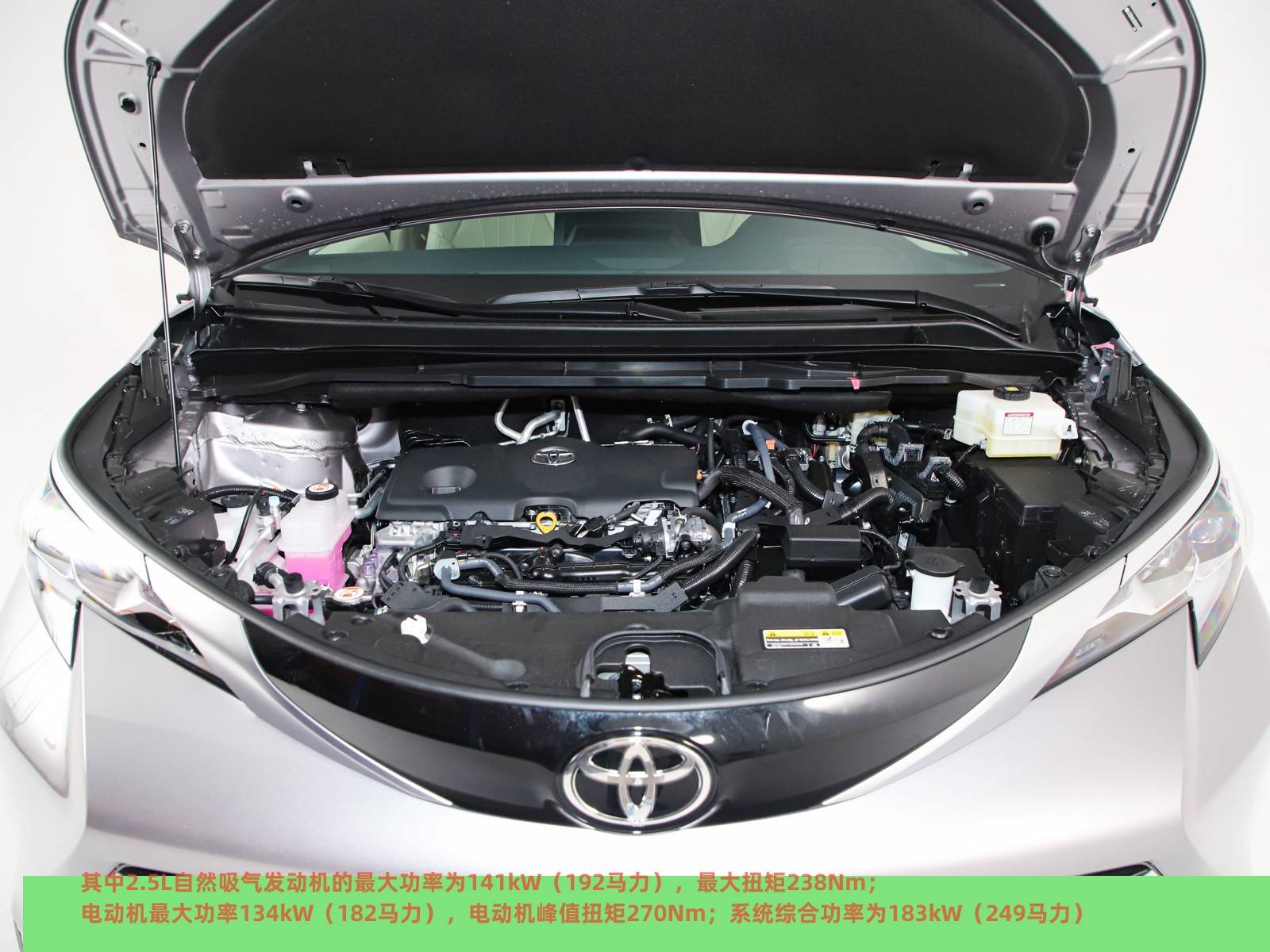 动力方面,广汽丰田赛那搭载丰田新一代THS混合动力系统,其中2.5L自然吸气发动机的最大功率为141kW(192马力),最大扭矩238Nm;电动机最大功率134kW(182马力),电动机峰值扭矩270Nm;系统综合功率为183kW(249马力),匹配了E-CVT无级变速箱。
