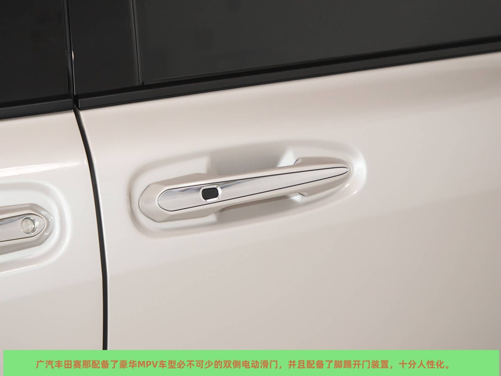 广汽丰田赛那配备了豪华MPV车型必不可少的双侧电动滑门,并且配备了脚踢开门装置,十分人性化。