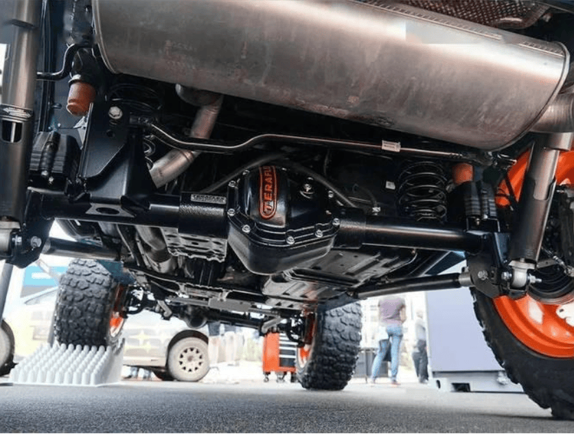 诸如双叉臂式独立悬架想要升高底盘的话,悬架的三角臂要进行同步升级;因为三角臂的材料和结构承受极限是依据特定角度范围设计的,强行升高底盘会改变其受力角度,容易导致三角臂断裂。但是用整体桥悬架则可以相对随意的升级,因为不会改变整体桥的受力角度,整体桥的壳体强度也确实略高。