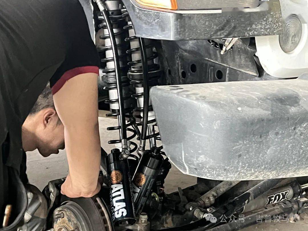 减震器安装完毕,整车3英寸升高后,底盘离地间隙已经提升到新的层次