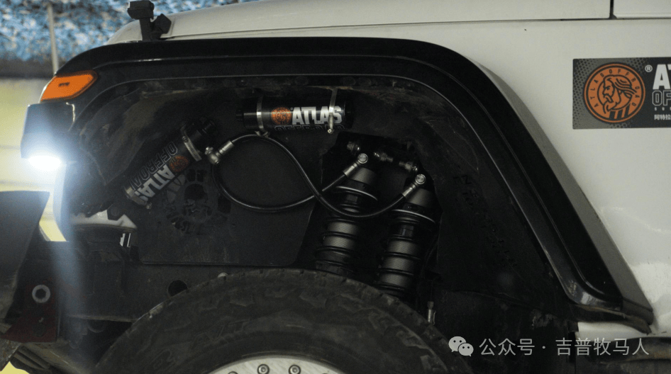 ATLAS赛事级减振器搭配了前2.5管径双绞牙,后2.5管径绞牙和外置氮气罐,能够保证牧马人在非铺装路面行驶时良好的舒适性,以及精准的操控性。