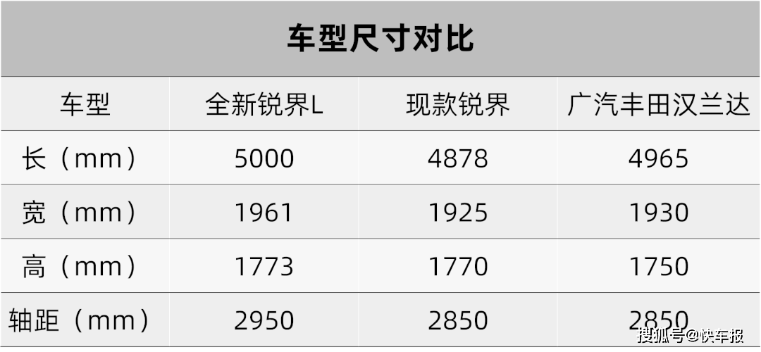 全新锐界L给人最深刻的印象,就是大,至少目测看来,它比现款锐界起码大了一圈。申报信息显示,它的长宽高尺寸分别为5000/1961/1773mm,轴距相比现款锐界增加了100mm,达到2950mm。这身材已经妥妥地超越了广汽丰田汉兰达,而伪装上“世界很大,锐界就能装得下”的这句宣传语,也能看出长安福特对这款车的空间表现充满了自信。