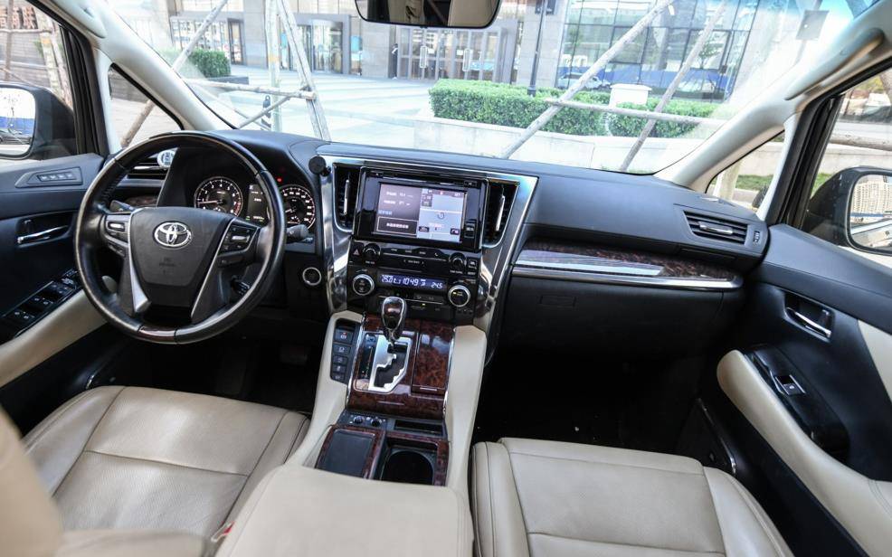 丰田埃尔法内饰设计也是高端大气上档次,中控台非常规整,排布紧凑合理。日式车型的内饰基本上都会保留大量的功能按键和旋钮,以保证实用性。四辐式多功能方向盘采用真皮包裹,支持手动调节和加热。彩色行车电脑中间是4.2英寸液晶仪表,显示清晰。10.5英寸中控屏功能比较简单,语音识别只限于电话功能。
