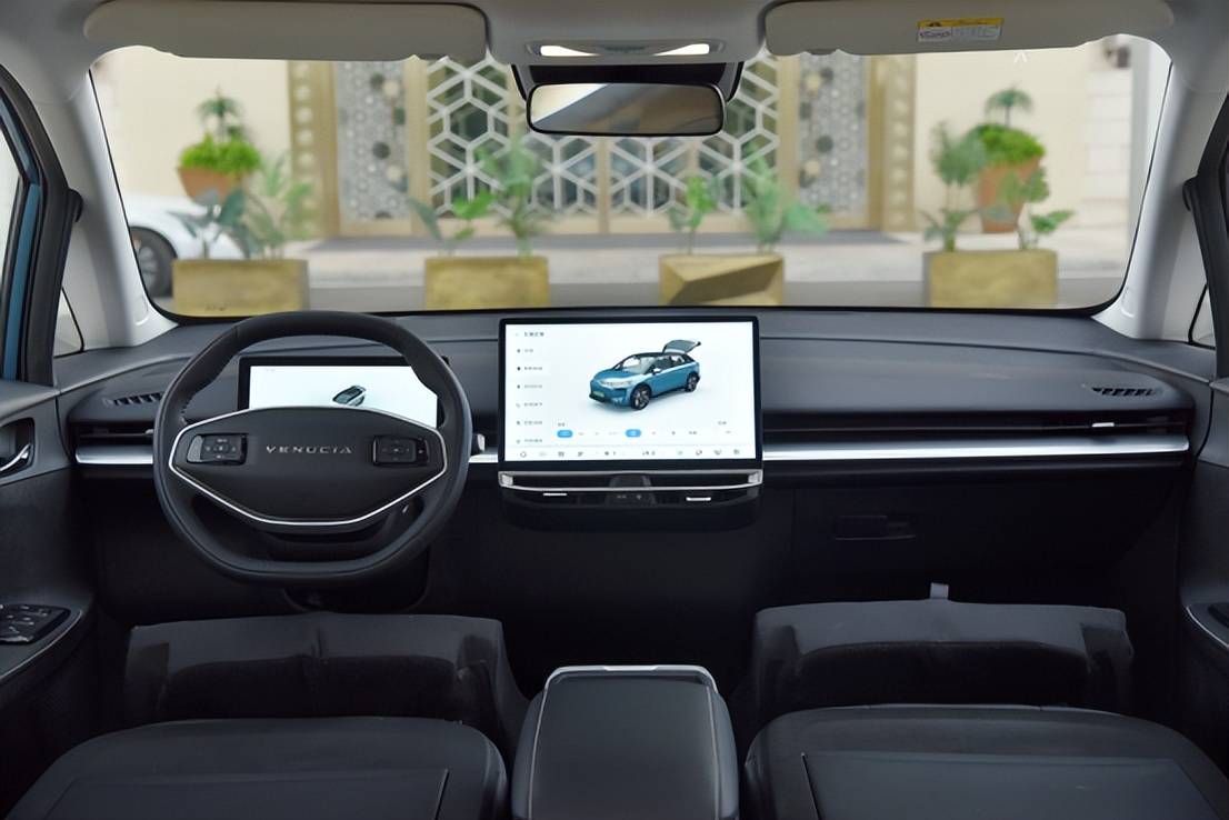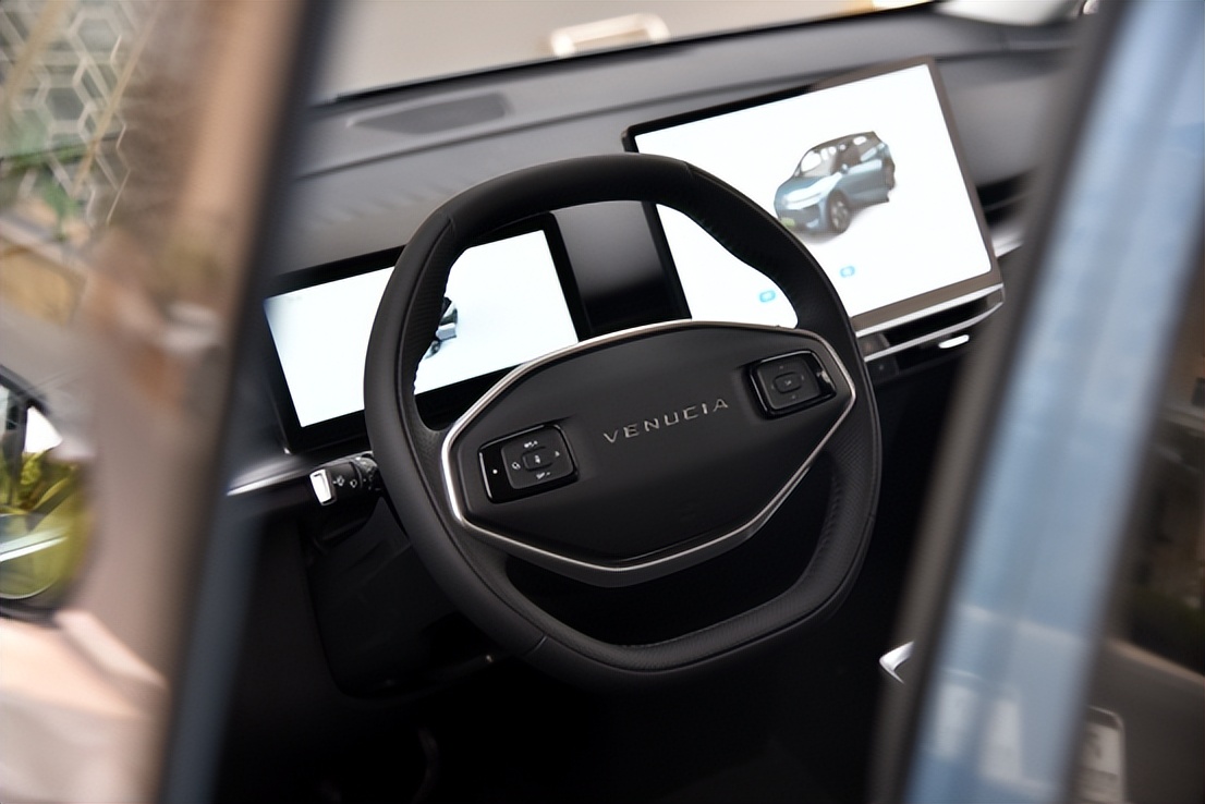方便实用的双幅式方向盘,正中央是Venucia车系的英文标识,左右两侧功能键布局清晰。前方是一块10.25英寸的液晶仪表盘,简洁、实用、科技感很强。