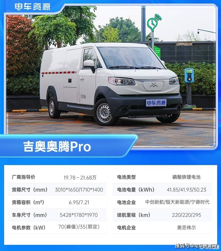 核心三电方面,奥腾Pro提供多款不同配置的电池,分别是恒天新能源41.93kWh、中创新航41.85kWh和宁德时代50.23kWh磷酸铁锂,工况续航里程220/220/295km。电机由奥思伟尔提供,峰值功率70kW,最大扭矩190Nm。