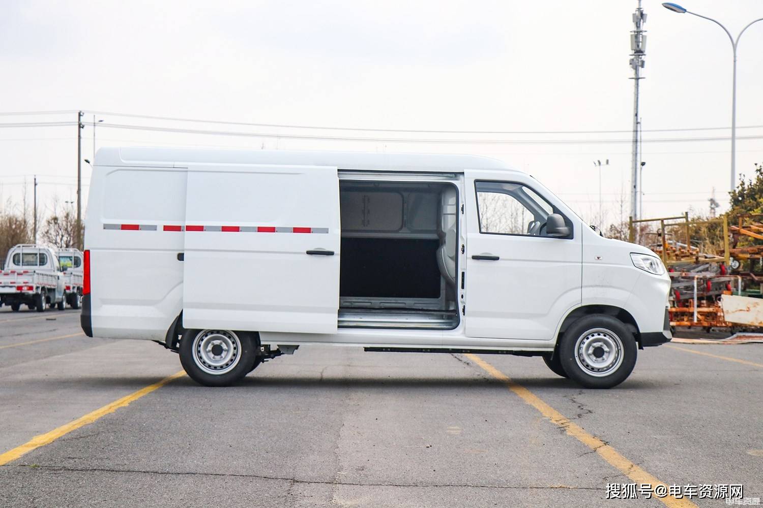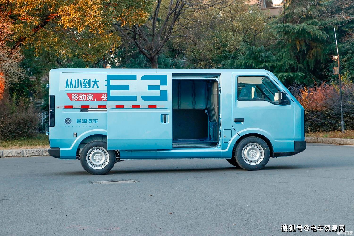 整车尺寸方面,鑫源E3L为E3系列的长轴车型,车身尺寸为4900*1780*1990mm,轴距为2865mm,货箱尺寸为3145*1620*1375mm,计算得出货箱容积7m³。货箱门设计上,鑫源E3L采用的是单侧侧滑门的设计和对开式尾门。
