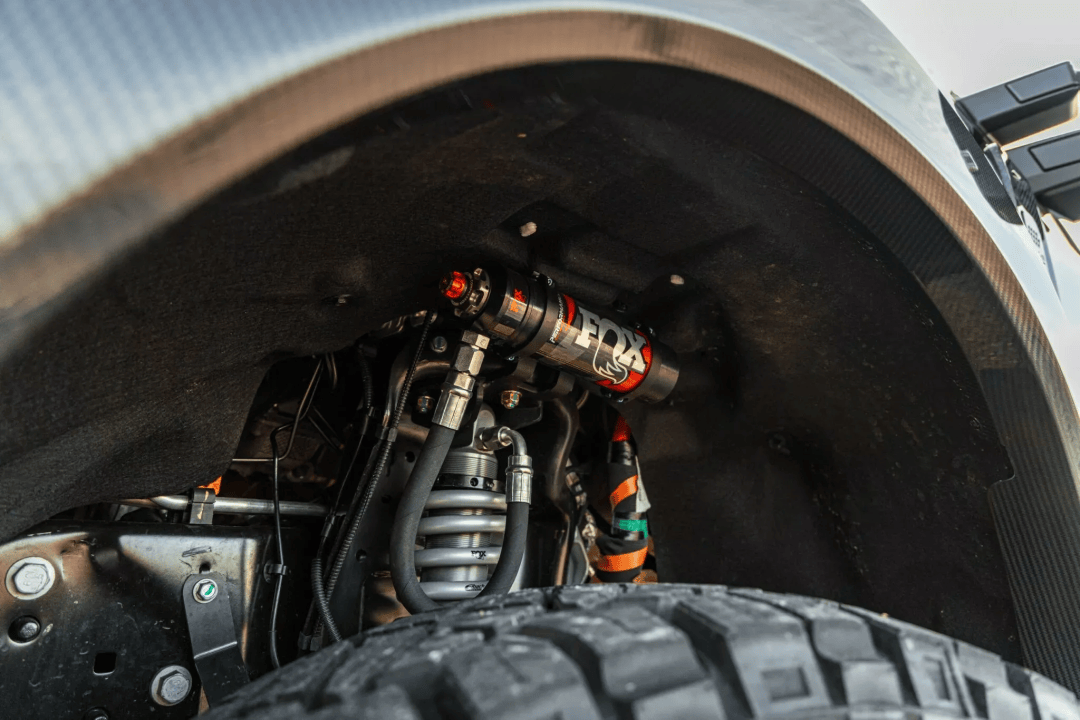 为让该车在复杂越野路况下名副其实,Hennessey通过BDS升高悬架套件,将车辆离地间隙提升了5英寸,同时装配了带远程储液罐的FOX 2.5英寸可调绞牙减震器,搭配全新18英寸轮毂与37英寸越野轮胎。