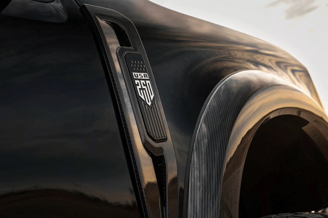 内饰方面,整车也完成了焕新升级:座椅采用黑色真皮与翻毛皮拼接材质,搭配红色撞色缝线点缀;全天候耐磨的WeatherTech脚垫为全系标配,每台车均配备专属限量编号铭牌,铭牌上还印有全彩星条旗图案,彰显纪念版身份。