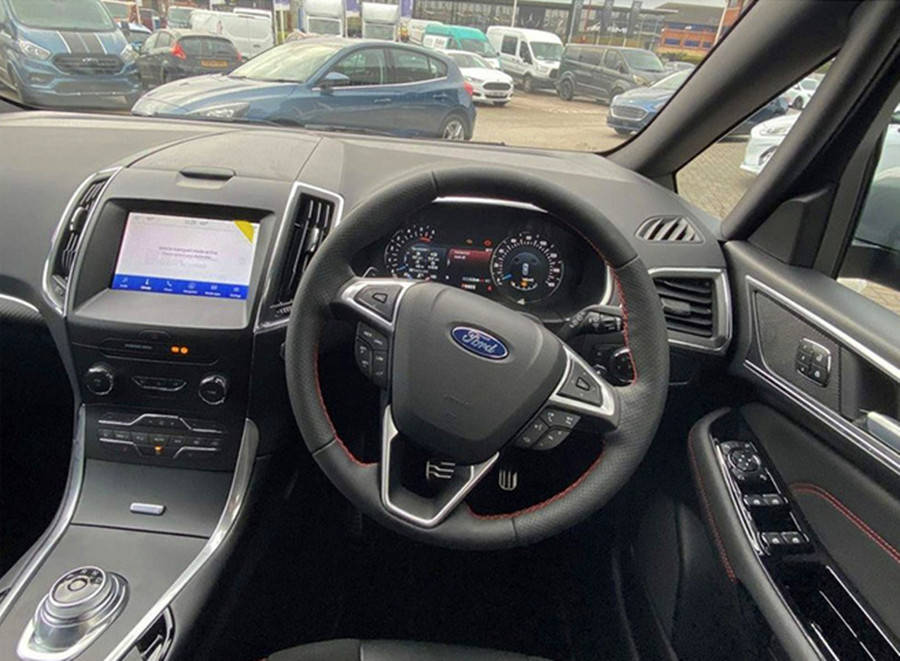 内饰方面,全新福特S-MAX的设计可以说延续了家族的传统,整个的布局与老款的蒙迪欧比较像,中控台很简约,采用了大量平直线条勾勒,呈现出了不错的层次感,面板包裹感比较强,采用了软性搪塑材料覆盖,内嵌式的中控屏尺寸够大,搭配上全新的液晶仪表,营造出了一定的科技感,旋钮换挡比较高级,另外在细节方面,亚光拉丝饰板和红色缝线的装饰很到位,提升了内饰的时尚氛围。