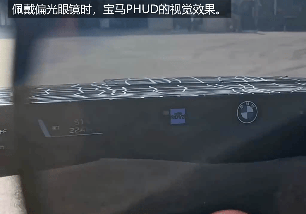 宝马的PHUD,戴着偏光墨镜也能看到,秘密在于它的显示屏,玻璃上有纳米镀膜,相比普通玻璃,它可以让投射出的偏振光的反射率提升两倍。