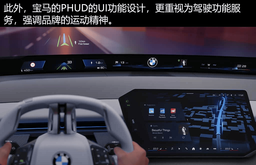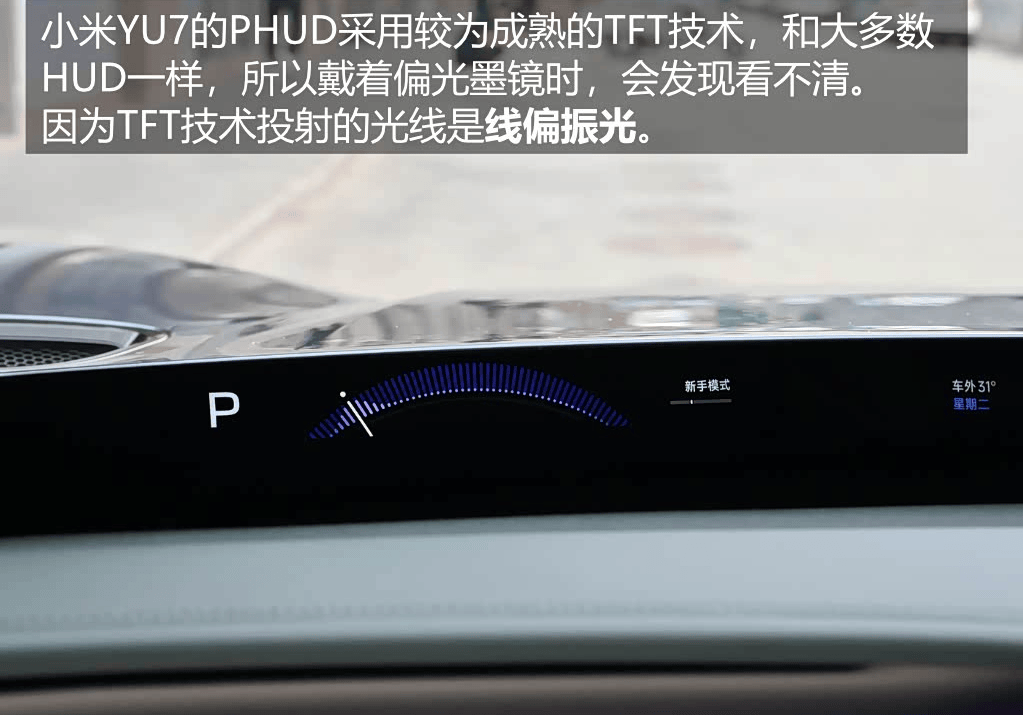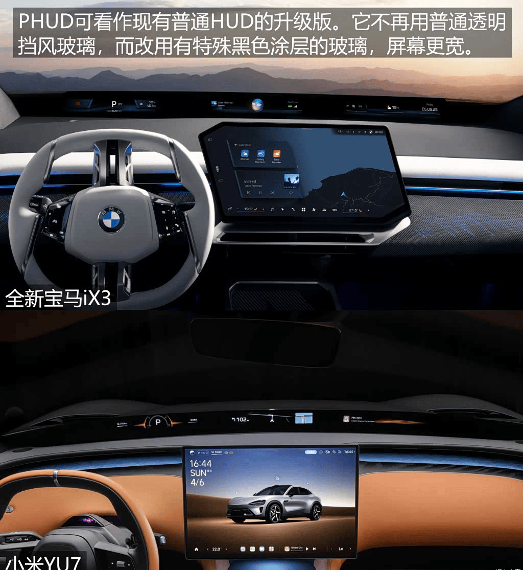 全新宝马iX3的全景视域桥和小米YU7的天际屏,在汽车零部件行业统称“PHUD(Panoramic HUD全景抬头显示)”。使用上最大的区别在于,小米YU7的PHUD,戴上偏光墨镜就看不见屏幕内容,宝马的可以。