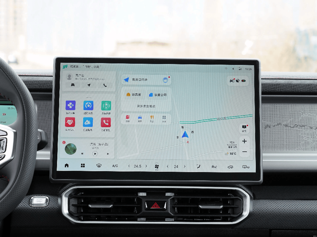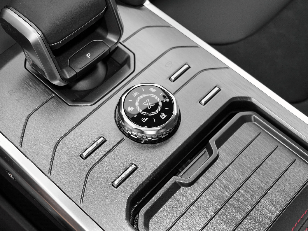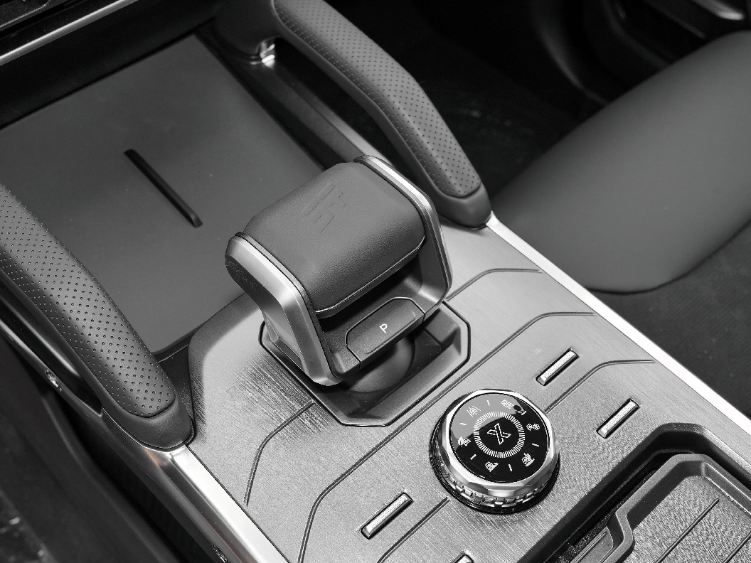 来到车内,内饰布局包裹感比较强,车内主要以黑色为主,中控台处加入了横向贯穿式铝合金拉丝面板,提升了车内质感。中间搭配15.6英寸的悬浮式中控屏,屏幕显示清晰度很高,内置功能也比较丰富,下方搭配了一个粗壮的电子档把,握起来满满的质感,10.25英寸的全液晶仪表盘显示的车辆信息比较全面。
