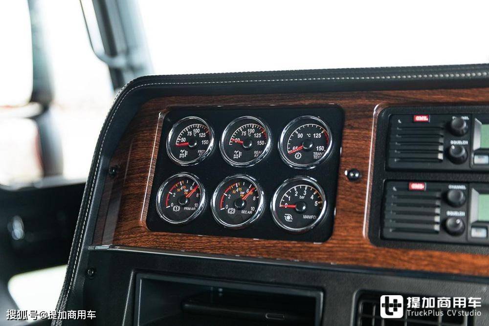 仪表台上安装了电台控制面板,最外侧安装有车辆关键信息的机械仪表,保持了一丝美系卡车内饰宛如“钟表店”的传统。