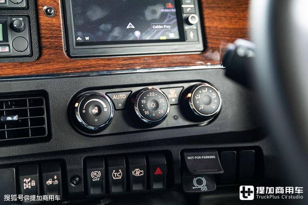 空调的控制面板放在多媒体屏幕下方,带自动空调功能。再往下,就是双闪灯以及车辆和挂车功能的控制按键了。