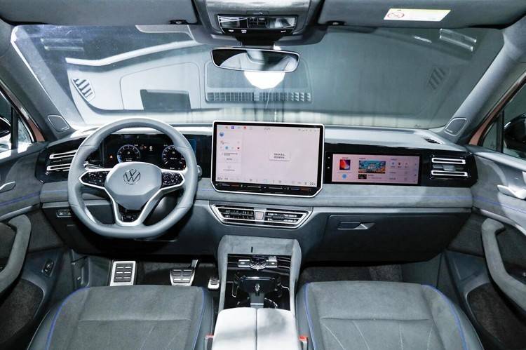 内饰跟上了国内当下流行趋势,智能座舱配备了15英寸/2K中控屏、10.3英寸液晶仪表、11.6英寸副驾屏幕,这应该是大众第一台前排搭载3屏幕的车型。车机内置高通骁龙车机芯片,支持无线Carplay、Carlife、HiCar手机互联功能,另外还配备了HUD抬头显示、电子怀挡、双层扶手台、智控旋钮、全景天窗、智能香氛系统等。