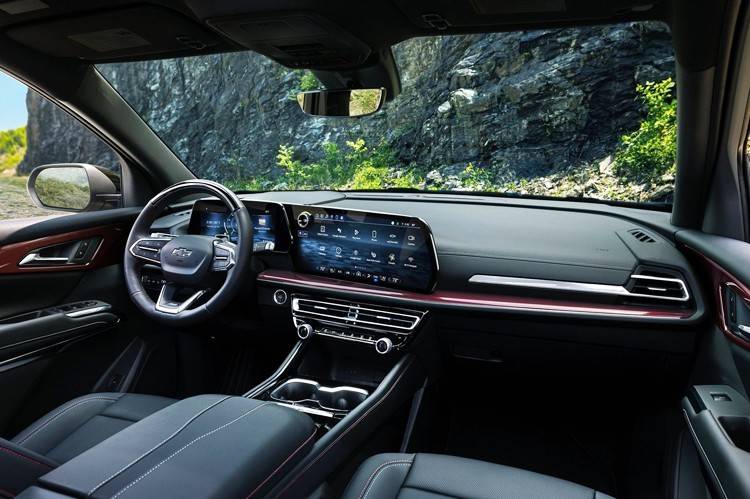 国产版车型的内饰并没有曝光,我们可以参考一下海外版车型。中控配备的是双联屏(11寸数字仪表盘+17.7英寸显示屏),三辐式方向盘旁边带有怀挡,整体档次感还算不错。动力上,雪佛兰TRAVERSE将搭载2.0T+电动机组成的油电混动系统,发动机最大功率150千瓦,电池采用三元锂电池组。