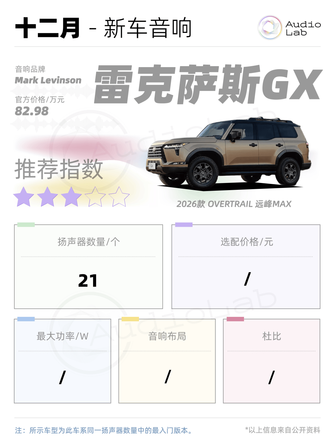 新款的雷克萨斯GX最大的变动是在音响的选装上。