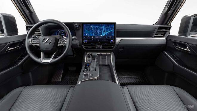 方向盘按键与抬头显示器HUD结合,使驾驶者能够更加专注于道路,轻松操作导航、音响等基本功能。为了强化驾驶者在越野时对车身姿态的感知,内室座舱围绕仪表板打造了简洁明了的横纵交错布局。中央显示屏位置较低,以尽可能优化前方视野,带来更加安心的驾控体验。此外,金属装饰贯穿整个中控,营造开阔宽敞的空间氛围。雷克萨斯首次为中央显示屏四周包裹了皮革镶边,还巧妙设计了膝部护板,将时尚设计与精湛工艺有机融合。