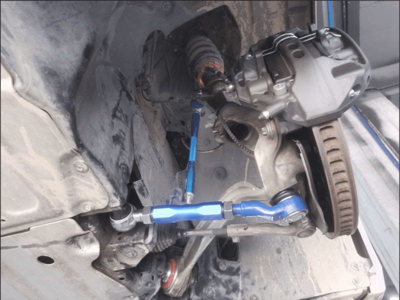 前轮拉杆和李子串都安装好了,注意前轮的高度传感器要固定好。师傅也是非常的尽责,前后安装+调校耗费了三个小时搞定
