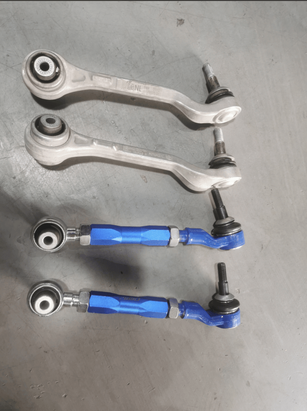 清单:戈麦兹GOMZ前轮可调下支臂+后轮四对可调拉杆+前后李子串(李子串是因为低趴车身会降低,原厂的不可调会形变,所以换可调节的)共14只摆臂,等了半个月,收到货后就迫不及待的去进行安装。