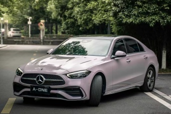 【Matrix】奔驰C级迷雾灰紫改色膜,灰的深邃紫的梦幻