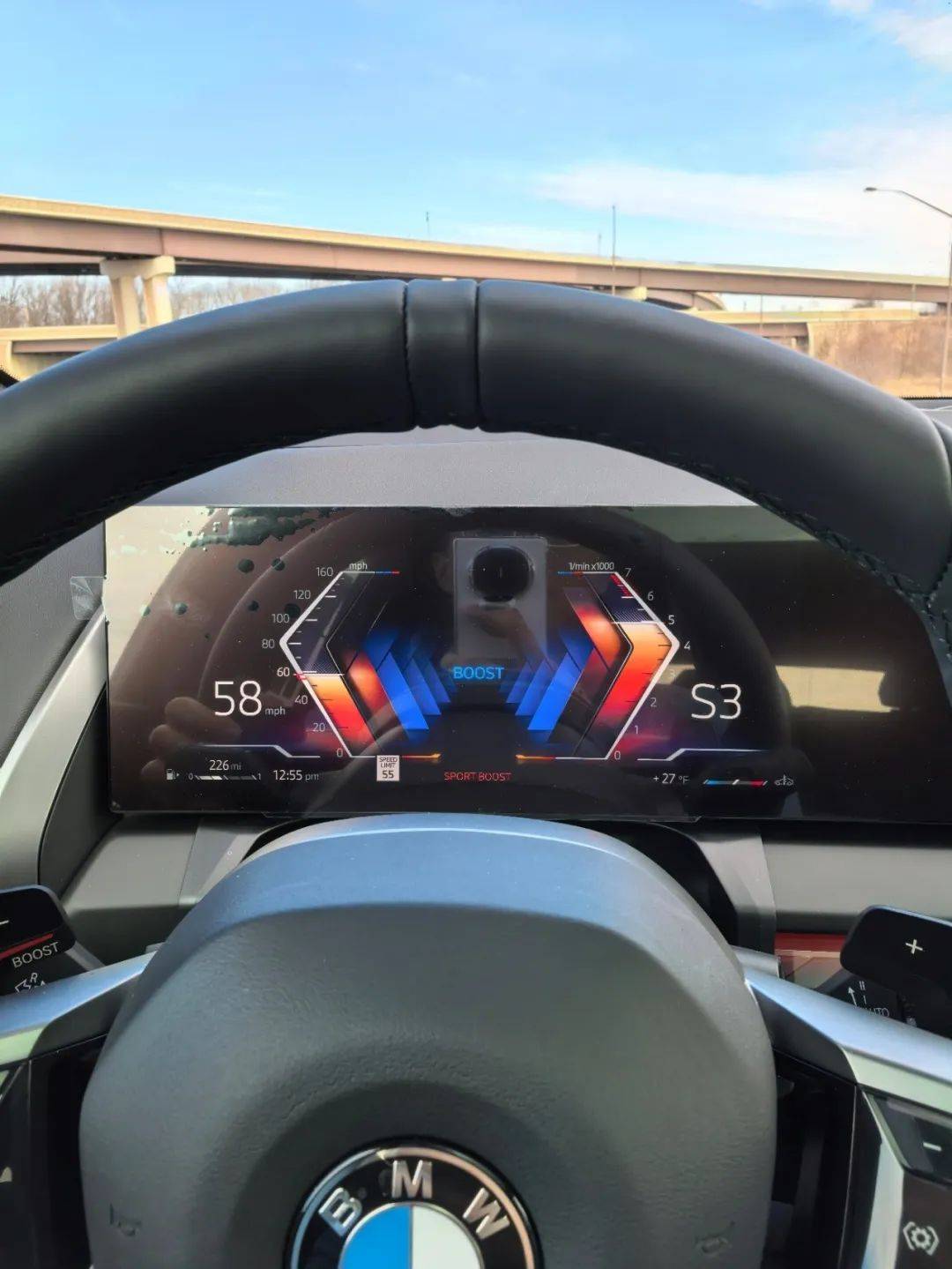 运动模式在全新X3(G45)上性格变化不是太明显,除了转向变得更重外,最明显的感受是Iconic Sound模拟声浪了,这个没啥太多可聊的,除了把引擎声放大传入车内外,还会模拟一些回火的炮声,但在车外是完全听不到的。