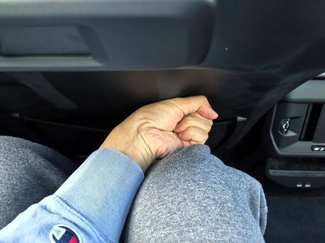 后排的门板要比前排更加的“boring”,这次完全是一团黑,连环绕门把手的氛围灯都没有装配,除了两个出风口外,没有任何配置。