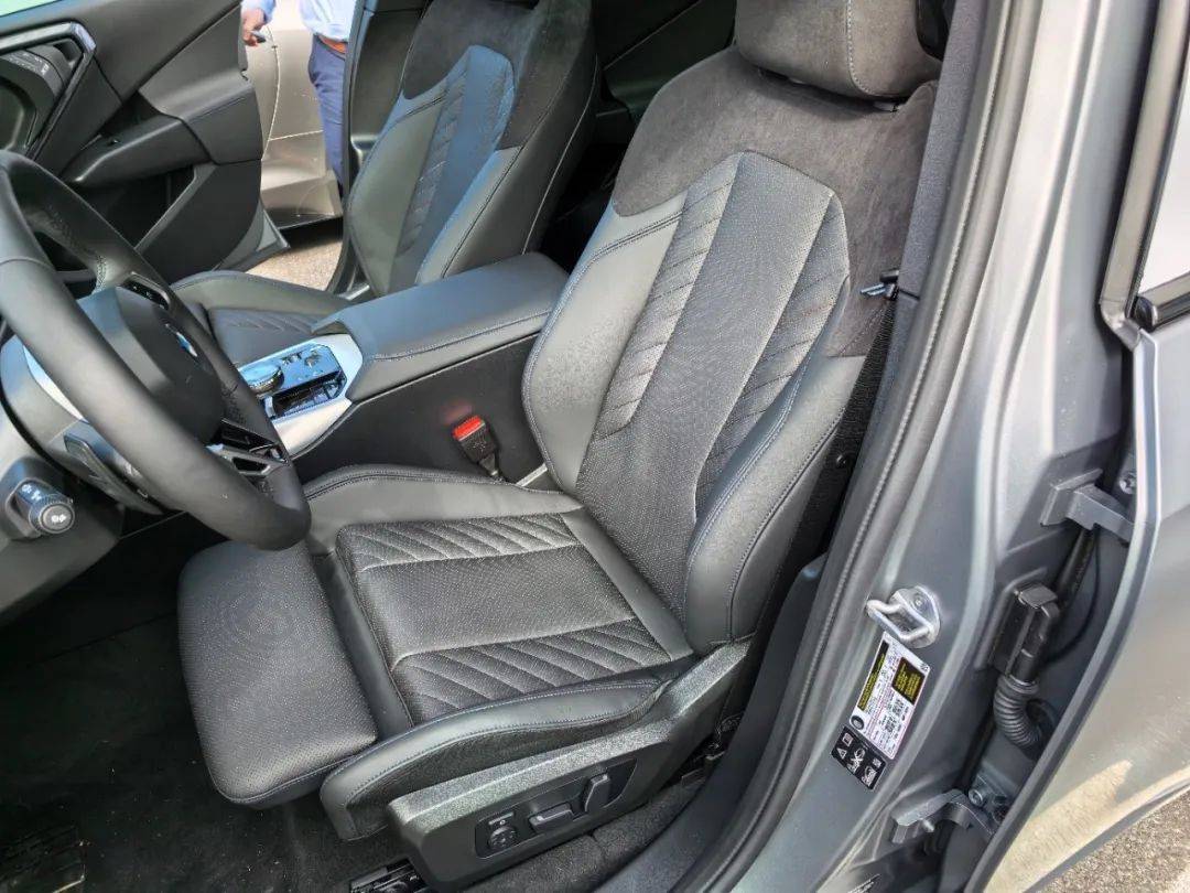 如果把门板上X3的标志和氛围灯挡住的话,很难相信这是一台价值6万多美金的宝马,用料着实差强人意,窗户控制区域也是磨砂黑塑料。能慰籍下心灵的也只有Veganza材质的仪表台了,触感观感都不错,还有缝线设计。美规车型也可选装“织物材质仪表台”。