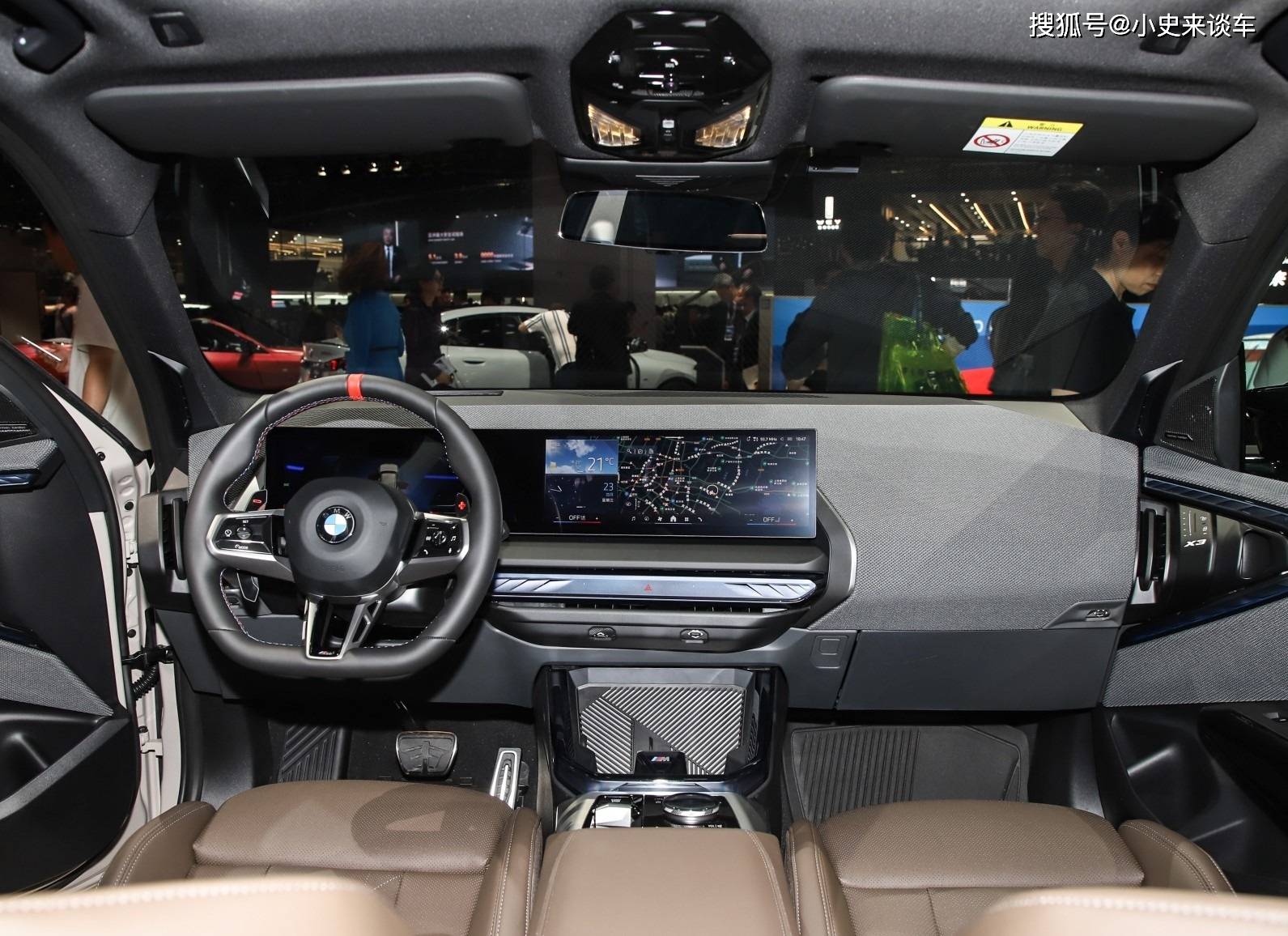 进入车内,新车的驾驶舱以驾驶员为中心,宽厚的饱满中控台搭载着12.3英寸仪表+14.9英寸中控曲面屏搭载iDrive 9系统,保留空调实体旋钮提升操作效率。而且很多突出的棱角线条更是层次感十足,座椅发那个面为Veganza皮革/Alcantara拼接,提供侧向支撑,红色回正标记方向盘与镂空换挡拨片激发驾驶欲。储物空间灵活多变,后备厢容积570-1700L,隐私隔板等细节彰显实用性。