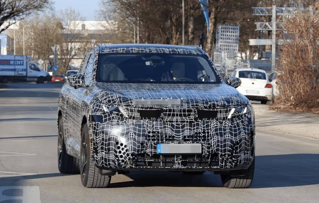 先说脸。双肾格栅轮廓很清楚,尺寸没往傻大里做,横向拉伸感反而更强。M Performance专属运动套件是板上钉钉,前包围开口比普通X5激进太多,蜂窝格栅大概率黑化处理。头灯修长,跟新一代X5完全一致,内部日行灯从天使眼改成了两道斜杠——新7系同款,放在SUV上挺提神。目前灯组还是测试件,量产会不会微调,得等官方松口。