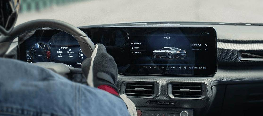 座舱方面,新一代福特 Mustang 配备一块 12.4 英寸的液晶数字仪表盘 + 13.2 英寸的中控屏幕,车内 Pony 按钮可以进入 MyMustang 个性化定制界面,提供标准、运动、湿滑、直线加速、赛道以及自定义六种驾驶模式。
