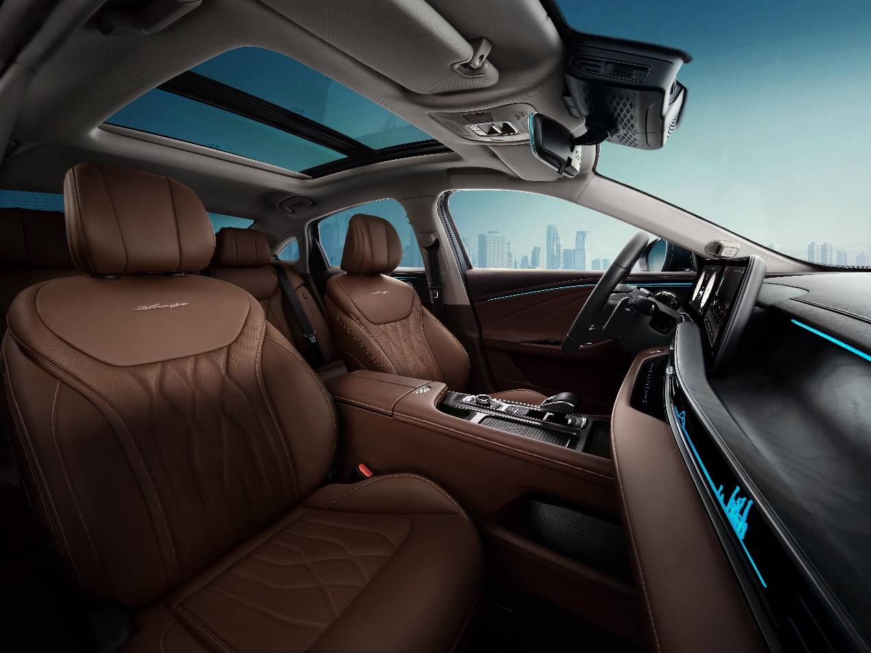 被动安全上,整车配备了80%的高强度钢、本特勒一体式门环、6吸能盒防撞横梁、同级独有10气囊。主动安全上来讲,搭载了540° 安全影像,还有L2.5级别智能驾驶辅助。