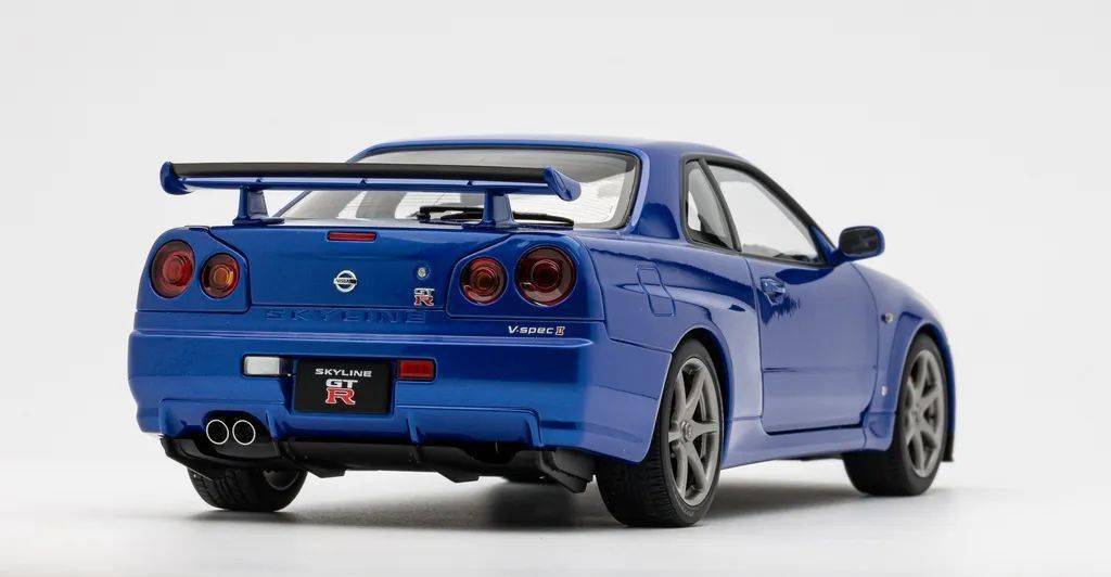 这次介绍的是MiniGT的一款重点产品,湾岸蓝的R34 V-SpecII,模型材质为合金,比例为1/64,这款模型姿态准确,细节丰富,价格低廉,应该算得上性价比之选。请注意,本次试玩,对比的用来参考对比的图片来自AA的模型。
