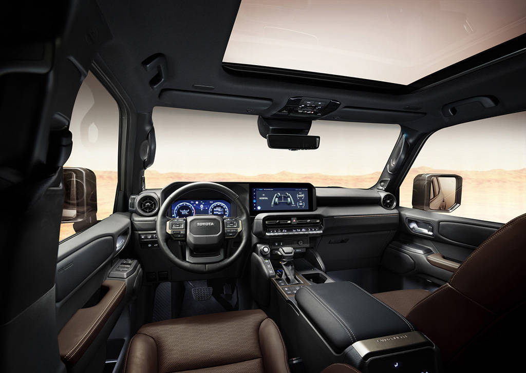 其次,从产品特点来看,全新普拉多在设计方面回归经典,提供了两种外观可选,包括方灯的普通版本和圆灯的1958经典版本。车身尺寸方面,新车长宽高分别为4920mm/1980mm/1860mm,轴距为2850mm,为车内提供了宽敞的乘坐空间。此外,全新普拉多还采用了更现代化的内饰设计,配备了12.3英寸的中控显示屏以及全液晶仪表,提供了更加智能化的驾驶体验。