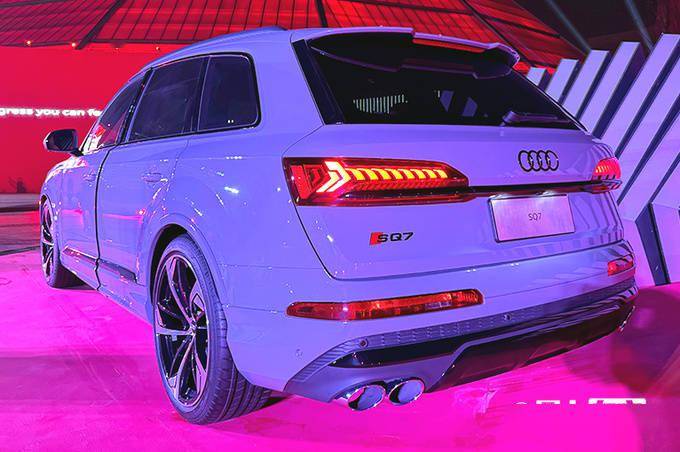 SQ7调整外观、内饰细节设计,进一步提升运动感。新车标配扩展黑光包,包括碳纤维风格前后包围、22英寸运动型轮圈、Audi Sport照地灯等;标配高清矩阵LED激光大灯、空气悬挂、全车隔音玻璃、双边四出运动排气和带迎宾效果的LED尾灯。