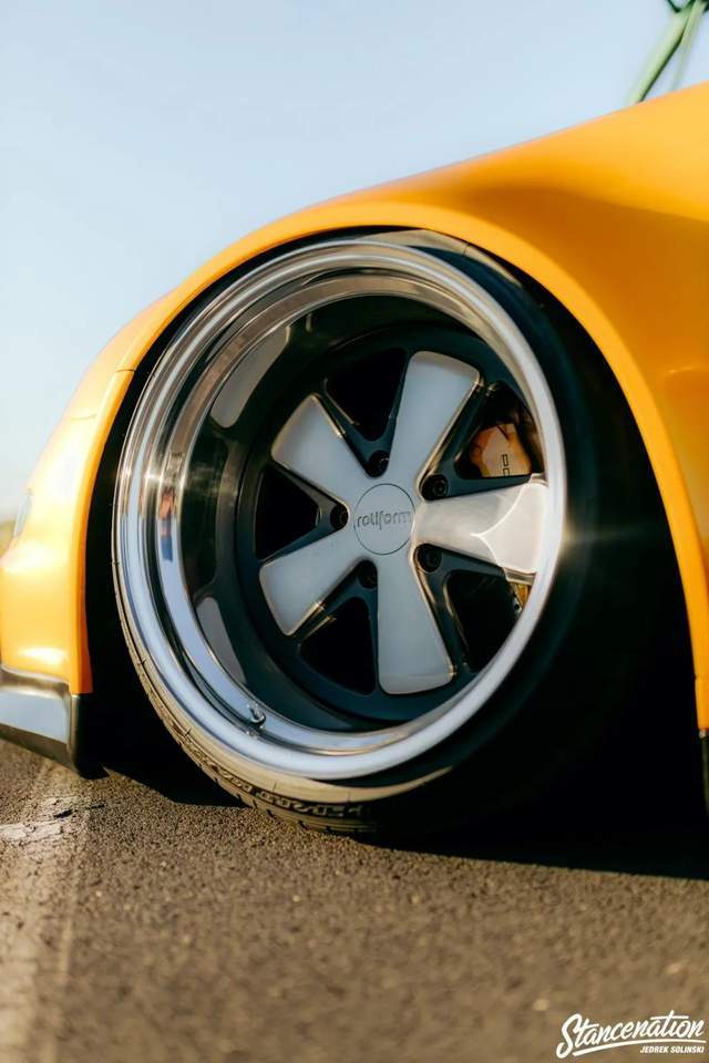 轮毂方面,采用了数据非常夸张的Rotiform FUC轮圈,多片式设计拥有非常大的抛边,正好配合这套宽体,而中片部份非常复古,让人联想起保时捷经典设计。
