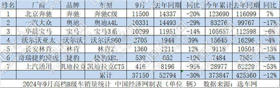 不容忽视的是,价格走低的背后也折射出传统合资品牌燃油车型在B级车市场日渐式微的现状。根据选车网数据,20款合资B级车9月销量136362辆,同比下滑24.17%;今年累计销量1114456辆,同比下滑13.87%。对比市场大盘来看,乘联会数据显示,我国B级轿车市场9月零售31万辆,同比增长25%;1-9月国内零售数量227万辆,累计增幅12%。