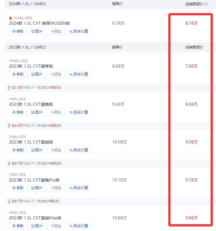 如果新款想定个一口价,我觉得7.98万元可能是一个比较尴尬但厂家可能会选的数字。