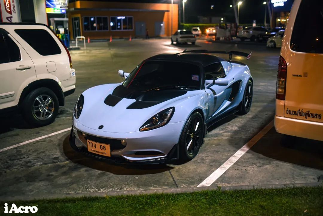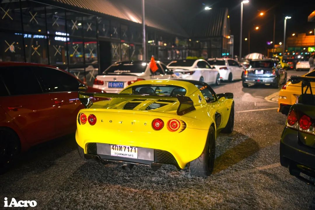国内罕见的Lotus Elise/Exige在泰国备受追捧,在当地普及性极高的Gymkhana以及耐力赛事中,身形娇小行动矫健的她们自然是不二之选。当晚现场也出现了几部Elise,其中这台Elise S给我们留下了深刻印象。加持上Exige Scura那独具特点的尾翼,再配上中央那只粗壮的排气,从车尾来看气势绝对不怂